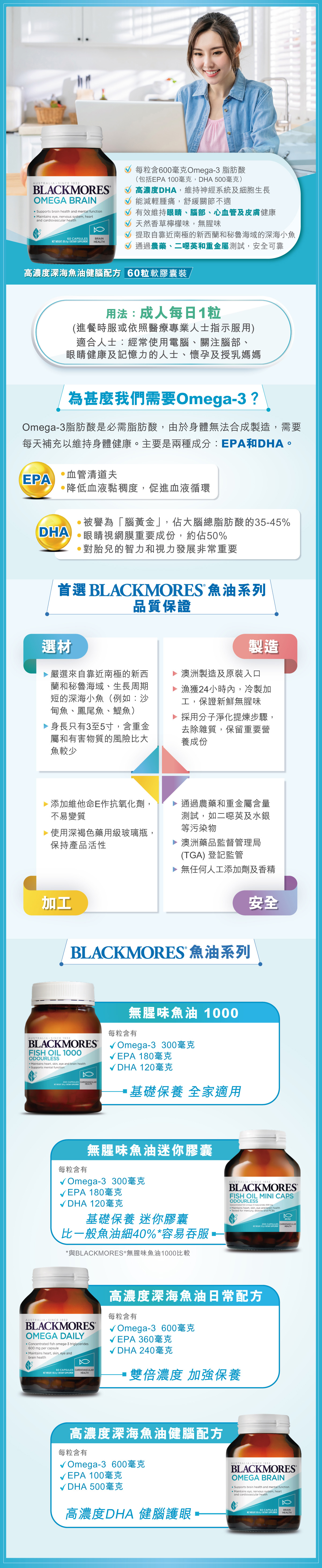 As high concentrations of DHA are found in brain cells, omega-3 fatty acid supplements support healthy brain function, no matter what your age is. With its combination of nutrients, Blackmores Omega Brain assists in improving brain performance.
