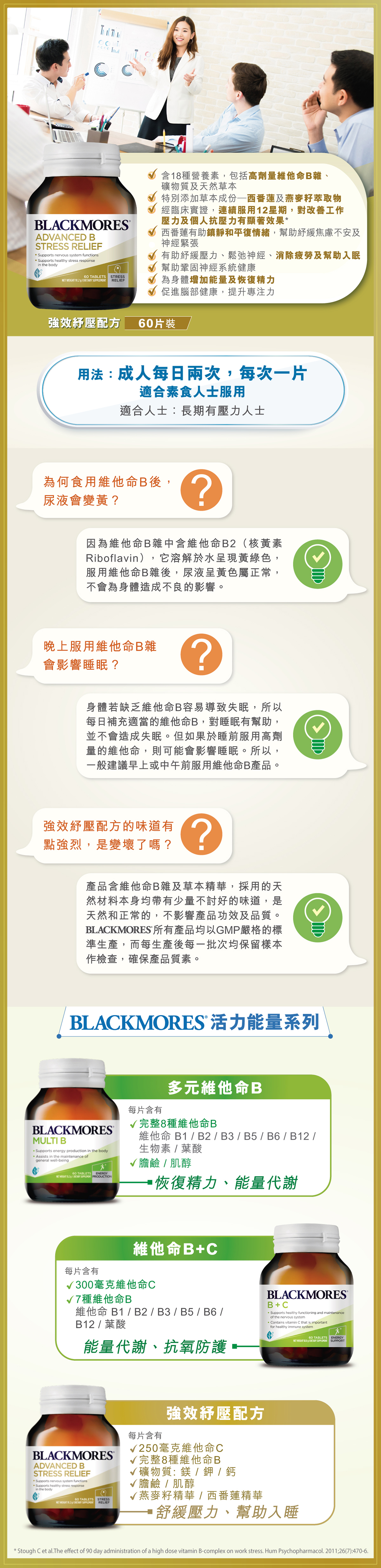 * Stough C et al.The effect of 90 day administration of a high dose vitamin B-complex on work stress. Hum Psychopharmacol. 2011;26(7):470-6.